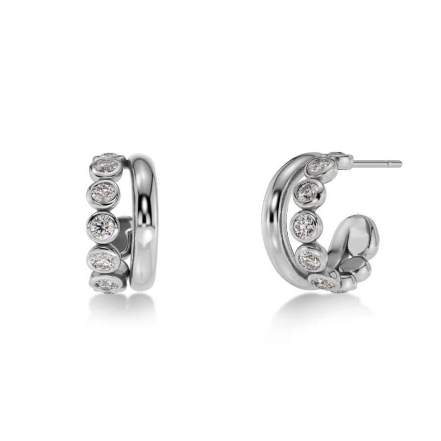 Edblad 130256 -korvarenkaat kuuluvat Grace-sarjaan, joka tunnetaan klassisesta muotokielestään modernilla twistillä. Korujen muotoilu perustuu kahteen rinnakkaiseen runkoon: toinen on sileä ja kiiltävä, toinen koristeltu säihkyvillä kuutiollisilla zirkonioilla. Yhdistelmä luo vaikutelman kahdesta erillisestä korvakorusta, vaikka kyseessä on yksi huolellisesti muotoiltu kokonaisuus. Pienikokoinen mutta yksityiskohtainen design tekee näistä korvarenkaista tyylikkään valinnan, joka tuo ilmeeseen syvyyttä ja eleganssia.