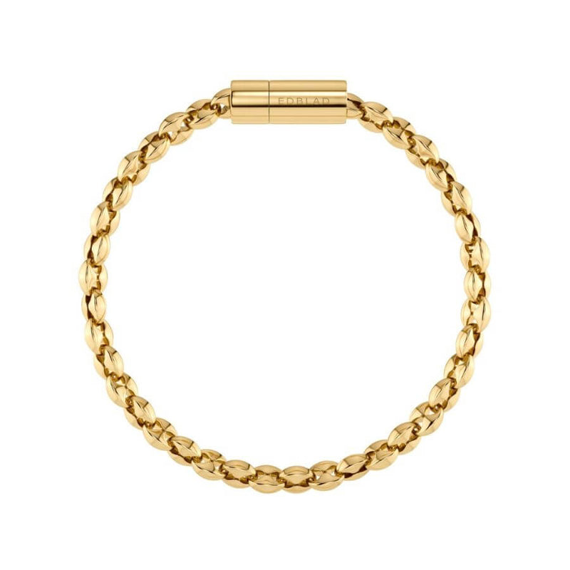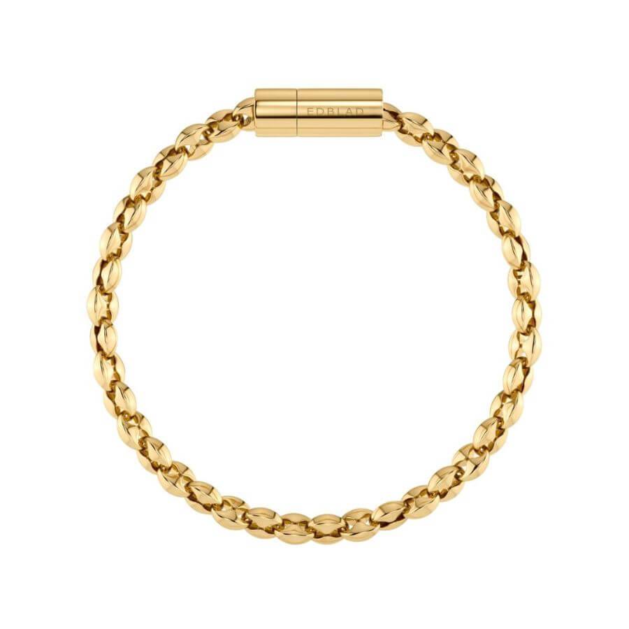 Edblad Nico 130348 -rannekorussa on fasettihiottu, litteä niin sanottu kahvipapuketju, joka heijastaa valoa kauniisti ja tekee korusta näyttävän mutta tasapainoisen. Elegantti ruuvikiinnitys viimeistelee kokonaisuuden ja tuo koruun modernin, viimeistellyn yksityiskohdan. Rannekoru on saatavilla kahdessa koossa (Small ja Large), jotta istuvuus on mahdollisimman miellyttävä.