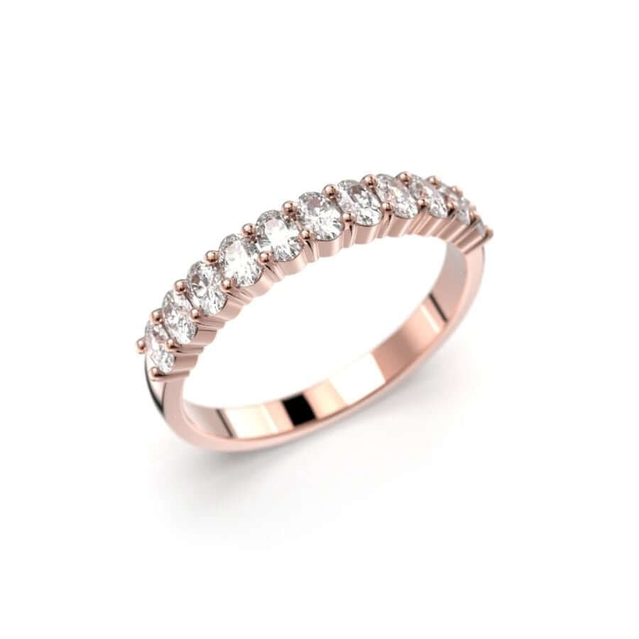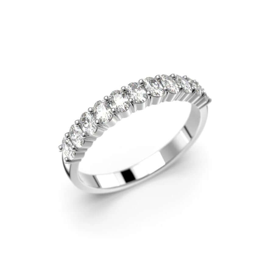 Festive Aurea Band Timanttisormus 760-055 on moderni ja elegantti rivisormus, jossa klassinen muotokieli kohtaa ajattoman säihkeen. Ovaalin muotoiset timantit luovat sormukseen kevyen mutta ylellisen ilmeen, joka sopii täydellisesti niin kihla- kuin vihkisormukseksi.