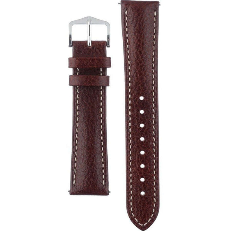 - Tyylikäs ruskea Hirsch kellon nahkaranneke , jossa valkoinen tikkaus.