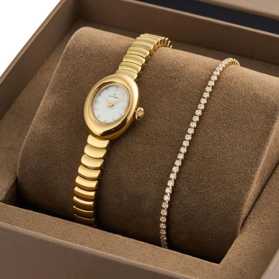 Mockberg Belle Oval Petite Combo MB1686 on täydellinen valinta naiselle, joka arvostaa klassista tyyliä ja elegantteja yksityiskohtia. Siro, säihkyvä ja ajattoman kaunis – tilaa nyt nopealla toimituksella tai tutustu muihin Mockberg kelloihin