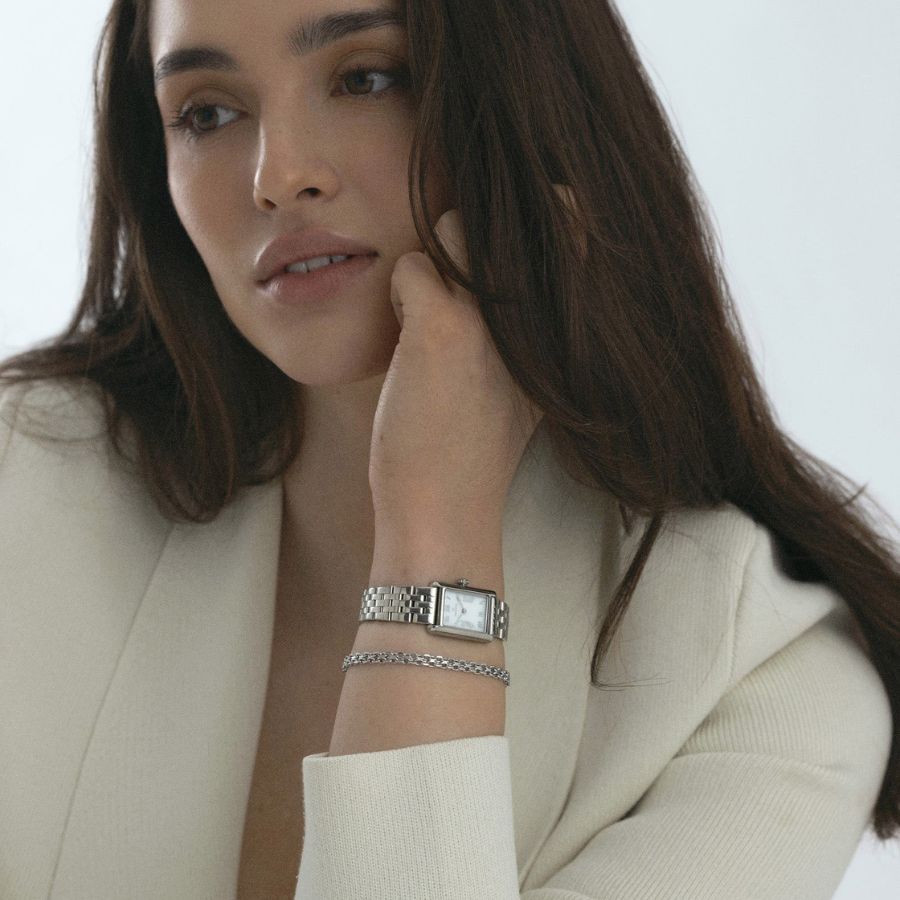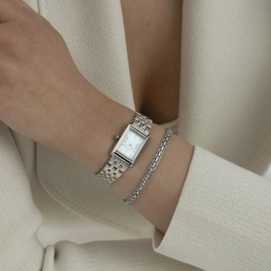 Settiin kuuluva Infinity-rannekoru viimeistelee kokonaisuuden. Sen klassinen muotoilu ja kiiltävä hopeansävy tuovat kellolle täydellisen parin, joka korostaa kantajansa tyyliä hienovaraisesti. Korun pituus on säädettävissä (16 + 4 cm), mikä tekee siitä mukavan ja helposti istuvan ranteeseen.