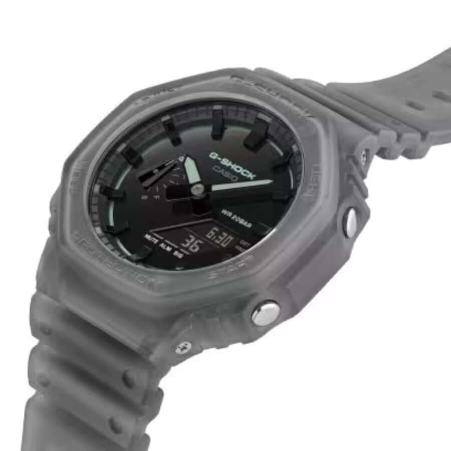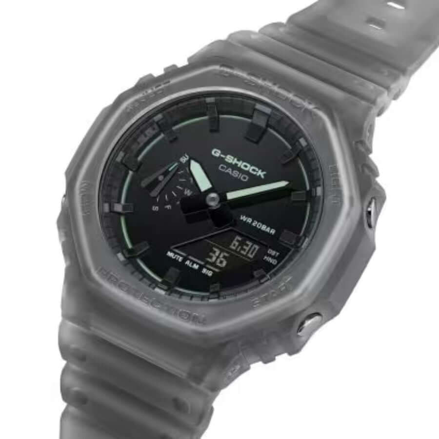 GA-2100K-1AER sopii käyttäjälle, joka arvostaa teknisiä ominaisuuksia, kestävyyttä ja vahvaa visuaalista ilmettä. Analogisen ja digitaalisen näytön yhdistelmä tarjoaa monipuoliset toiminnot, kuten maailmanajan, sekuntikellon, ajastimen ja viisi päivittäistä hälytystä.