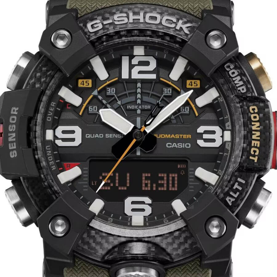Casio GG-B100X-1A3ER kuuluu Master of G -mallistoon, joka on kehitetty ammattilaisille työskentelemään vaativimmissa ympäristöissä. Kellon kuori hyödyntää erittäin jäykkää hiilirakennetta, joka ehkäisee vaurioita ja muodonmuutoksia sekä takaa erinomaisen iskunkestävyyden ja tiiveyden. Carbon Core Guard -rakenne, mutasuojattu rakenne sekä pölyltä suojaava suodatin tekevät kellosta luotettavan kumppanin haastaviin maasto-olosuhteisiin. Hiilikuituvahvisteinen bezel ja lasikuitua sisältävä takakansi vahvistavat rakennetta entisestään. Mustan ja vihreän sävyinen väritys korostaa mallin teknistä ja sotilaallishenkistä ilmettä.