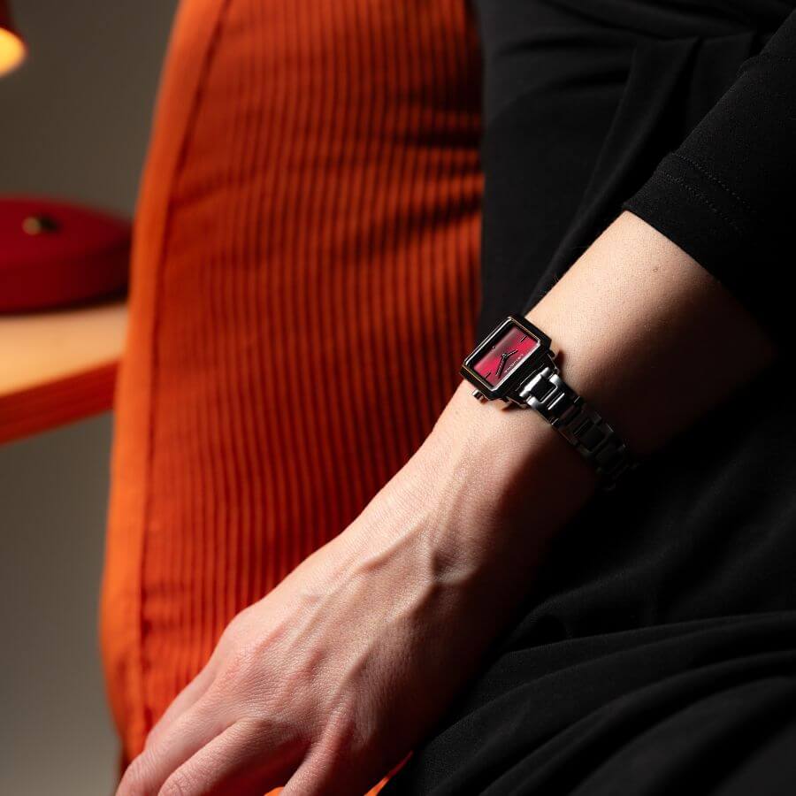 Leijona 5172-4736 jatkaa Jewellery Sointu -malliston korumaista linjaa, jossa jokainen yksityiskohta on suunniteltu tuomaan ranteeseen persoonallisuutta ja laatua. Suorakaiteinen kuori luo vahvan ja klassisen muodon, ja hopeansävyinen metalliranneke korostaa kellotaulun kultaisia sävyjä. Golden Groove on malliston energisin tulkinta – lämpimän sävyinen, rytmikäs ja täynnä asennetta.