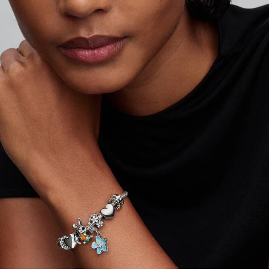 Pandora 794498C01 yhdistää Disneyn taian ja Pandoran tarkan viimeistelyn. Hela esittää Stitchiä pukeutuneena pääsiäispupuksi, pitkät pupunkorvat päässään ja porkkana kädessään. Porkkanan kirkas oranssi sävy ja vihreät yksityiskohdat on toteutettu emalilla, joka tuo koruun iloista värikkyyttä. Stitchin ilme ja kolmiulotteinen muotoilu tekevät charmista eläväisen ja tunnistettavan.