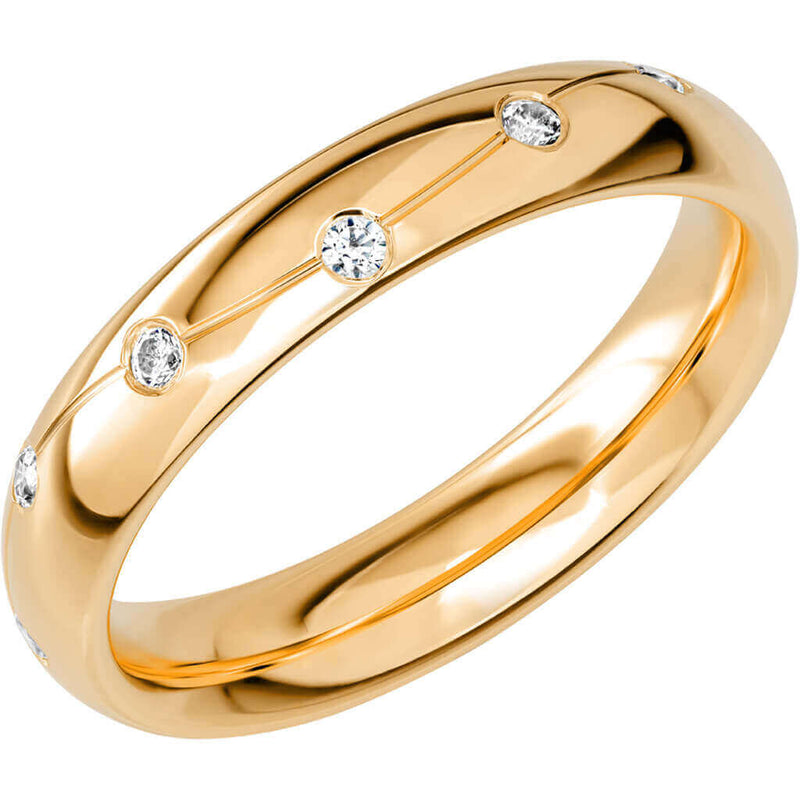 - Yhdessä timantit luovat näyttävän kimaltelevan rivistön, jonka huoliteltujen timanttien yhteispaino 0,24 ct.