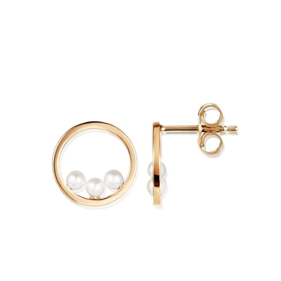 Efva Attling 12-101-02375 -korvakoruissa 18 karaatin keltakullasta valmistettu siro rengas toimii kehyksenä kolmelle 2,7 mm kokoiselle helmelle, jotka lepäävät kauniisti renkaan sisällä. Minimalistinen muotoilu tekee niistä ajattomat, mutta samalla helmien liike ja pehmeä hohde tuovat koruihin leikkisyyttä ja elämäniloa. 12 mm halkaisijaltaan oleva rengas on täydellinen koko – huomaamaton mutta samalla erottuva yksityiskohta.