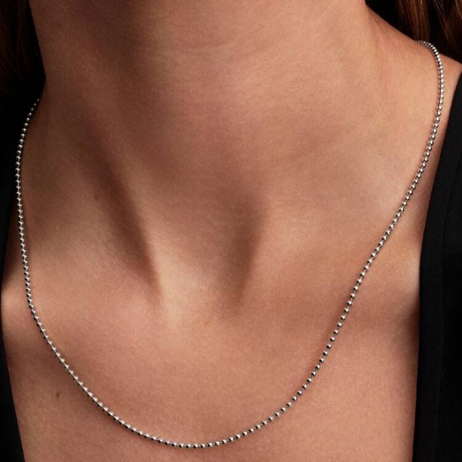 Pandora Ball Chain Kaulaketju 394452C00-50 on monikäyttöinen ja moderni perusketju, joka täydentää vaivattomasti niin arkiset kuin juhlavammatkin asukokonaisuudet. Siroista hopeapalloista muodostuva ketju luo pehmeästi valoa heijastavan ilmeen, joka toimii kauniina yksityiskohtana sellaisenaan tai korostaa upeasti erilaisia riipuksia.