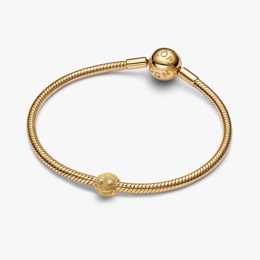 Hela on valmistettu metalliseoksesta, joka on päällystetty 14 karaatin kullalla. Kultainen sävy korostaa hymynaaman lämpöä ja antaa charmille elegantin, mutta rennon viimeistelyn. Yhteensopiva Pandora Moments -korujen kanssa, tämä hela liukuu vaivattomasti Moments-rannekoruihin ja -ketjuihin ja toimii upeasti symbolisten, teksturoiden tai minimalististen helmien rinnalla.