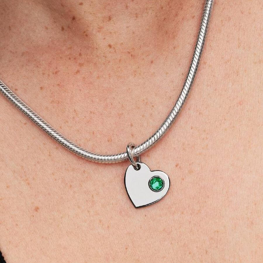 Pandora Toukokuu Kaiverrettava Sydän Charm Hela 794295C05 on raikkaan vihreä ja merkityksellinen koru, joka juhlistaa toukokuun eloisaa sävyä. Tämä sydämenmuotoinen riipushela yhdistää kuninkaallisen vihreän kiven ja henkilökohtaisen kaiverrusmahdollisuuden – täydellinen tapa tallentaa tärkeä hetki osaksi omaa korutarinaasi.