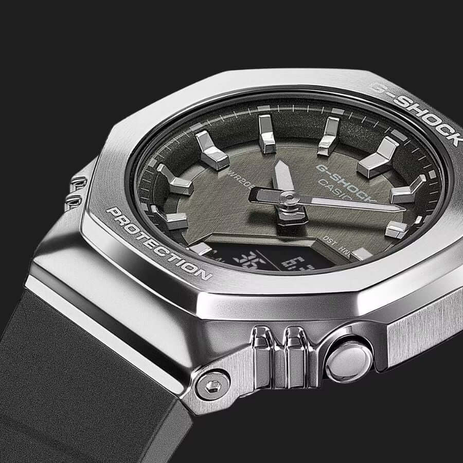 Casio G-Shock GM-S2110-1A1ER erottuu metallisella kehyksellään ja selkeälinjaisella muotoilullaan. Musta kellotaulu hienovaraisella ristikkäisellä hiusviimeistelyllä luo arvokkaan ja huolitellun ilmeen, joka toimii yhtä hyvin arjessa kuin viimeistellymmässäkin pukeutumisessa. Pelkistetty värimaailma tekee kellosta erittäin monikäyttöisen, ja ikoninen kahdeksankulmainen muoto tuo kokonaisuuteen G-SHOCKille tunnistettavaa luonnetta.