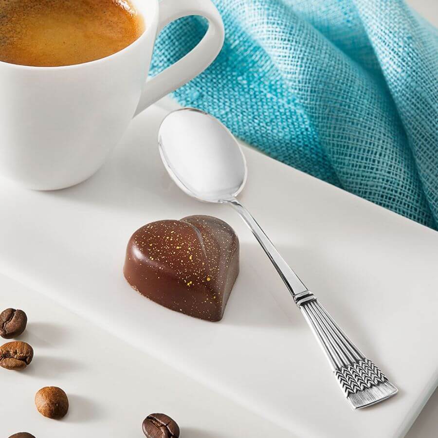 Kultakeskuksen valmistama Tähkä-sarja on yksi suomalaisen muotoilun tunnetuimpia hopeasarjoja. Kahvilusikan harmoninen yhdistelmä kiillotettua hopeapintaa ja hillittyä koristekuviota tekee siitä kauniin lisän sekä arjen että juhlan kahvihetkiin. Lusikan tasapainoinen muoto istuu käteen miellyttävästi, ja sen kiiltävä pinta heijastaa valoa hienostuneesti.