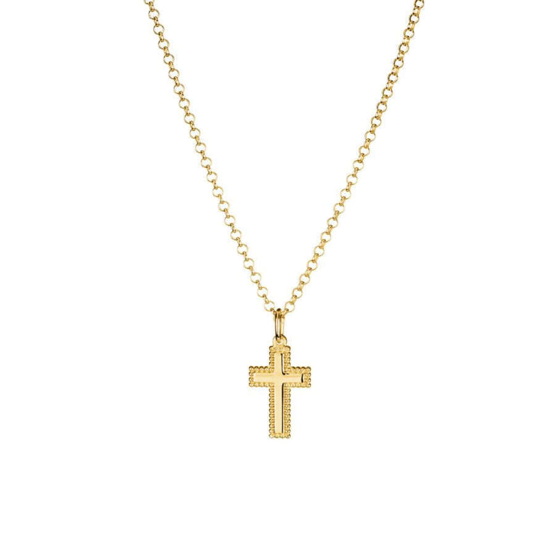 Lumoava L60264100000 -kaulakorun risti on muotoiltu selkeälinjaiseksi ja viimeistelty kauniilla helmimäisellä reunuksella, joka tuo koruun elävyyttä ja klassista ilmettä. Keltakullattu pinta korostaa muodon yksityiskohtia ja antaa korulle lämpimän, arvokkaan sävyn. Riipuksen koko on harkittu: se on hillitty mutta näkyvä, ja asettuu kauniisti kaulalle ilman raskasta vaikutelmaa.