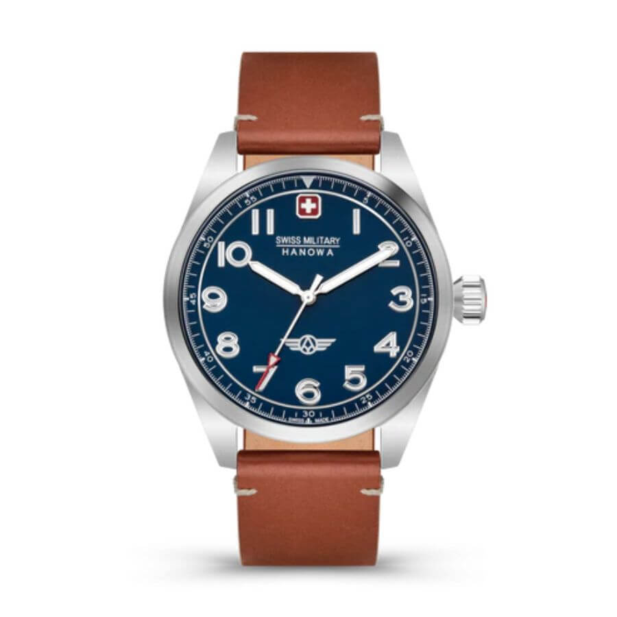 Swiss Military Hanowa Falcon SMWGA2100402 sveitsiläinen lentäjäkello, jossa yhdistyvät vintage-henkinen muotoilu ja moderni suorituskyky. Selkeä sininen kellotaulu, suuret tuntimerkit ja ruskea nahkaranneke luovat ajattoman tyylin, joka toimii niin arjessa kuin juhlassa. Falcon on todellinen klassikko, joka on valmis seuraamaan sinua uusiin korkeuksiin.