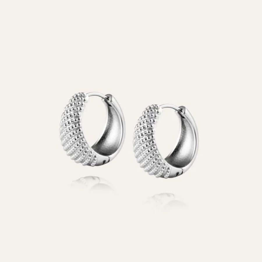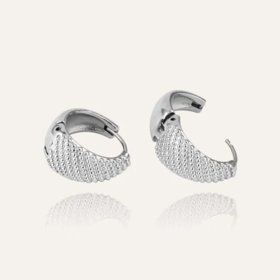 Mockberg Honey Large Korvarenkaat MO696 erottuvat tyylikkäällä ja uniikilla kuvioidulla pinnallaan, joka tuo klassiseen muotoiluun modernin ja näyttävän vivahteen. 18 mm kokoiset hopeansävyiset korvakorut ovat monikäyttöinen valinta – ne viimeistelevät asukokonaisuuden niin arjessa kuin juhlassakin.