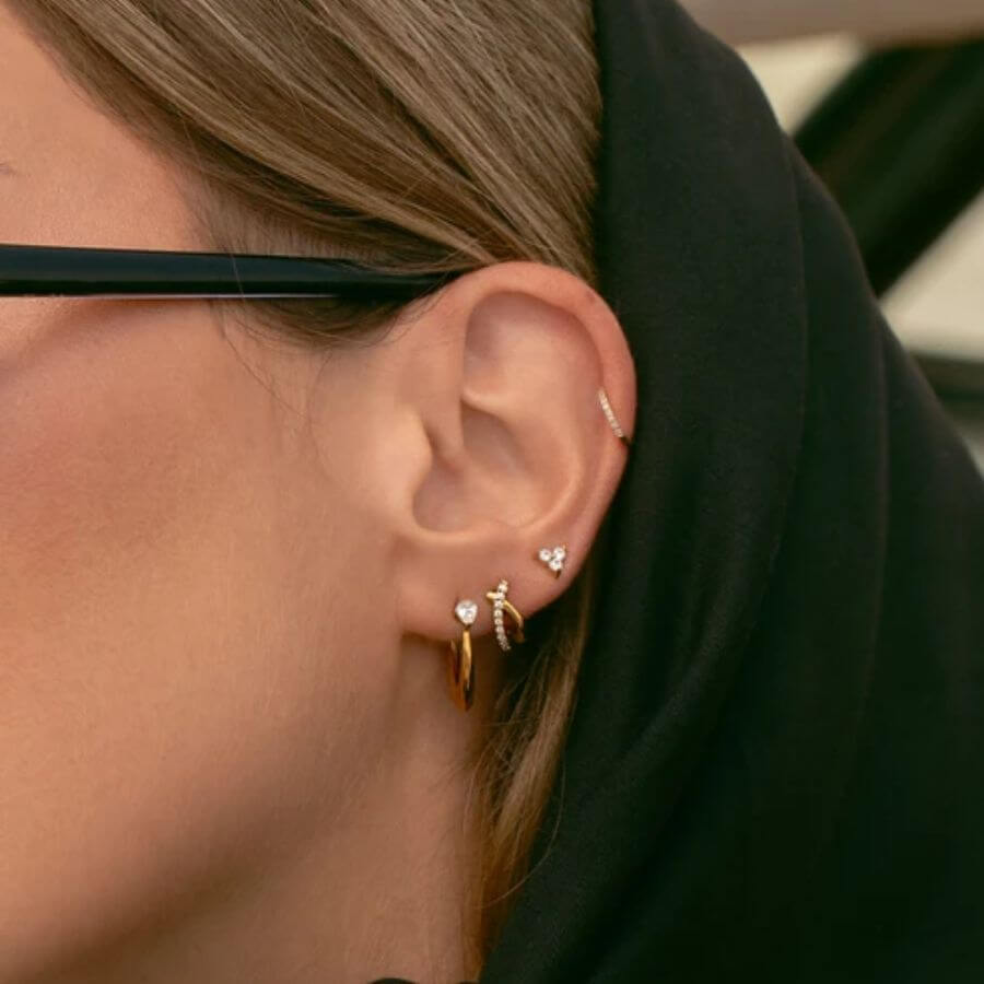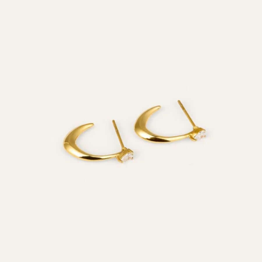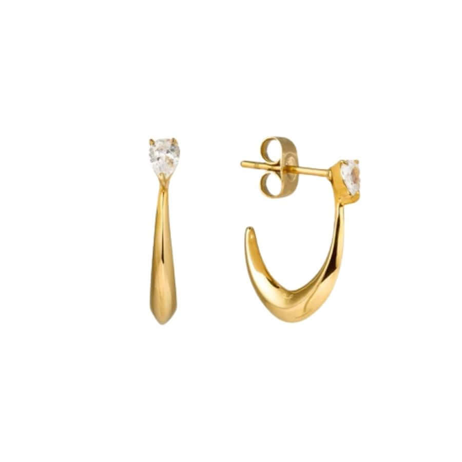 Mockberg Iris -korvakorut ovat kunnianosoitus skandinaaviselle ajattomuudelle. Kiillotettu 18K kultapinnoitettu ruostumaton teräs säteilee lämmintä hehkua, jota kirkas valkoinen zirkonia korostaa jokaisessa valonvälähdyksessä. Elegantti ja herkkä muotoilu tekee näistä korvakoruista täydellisen valinnan niin arkeen kuin juhlaan.
