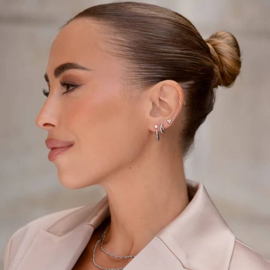 Mockberg Noor -korvakorut ovat pieni, mutta säihkyvä yksityiskohta, joka viimeistelee lookin tyylikkäällä tavalla. Kolmen kirkkaan cubic zirconia -kiven muodostama kaunis kuvio loistaa hillitysti jokaisella liikkeellä.