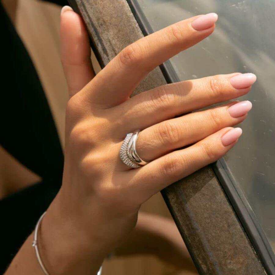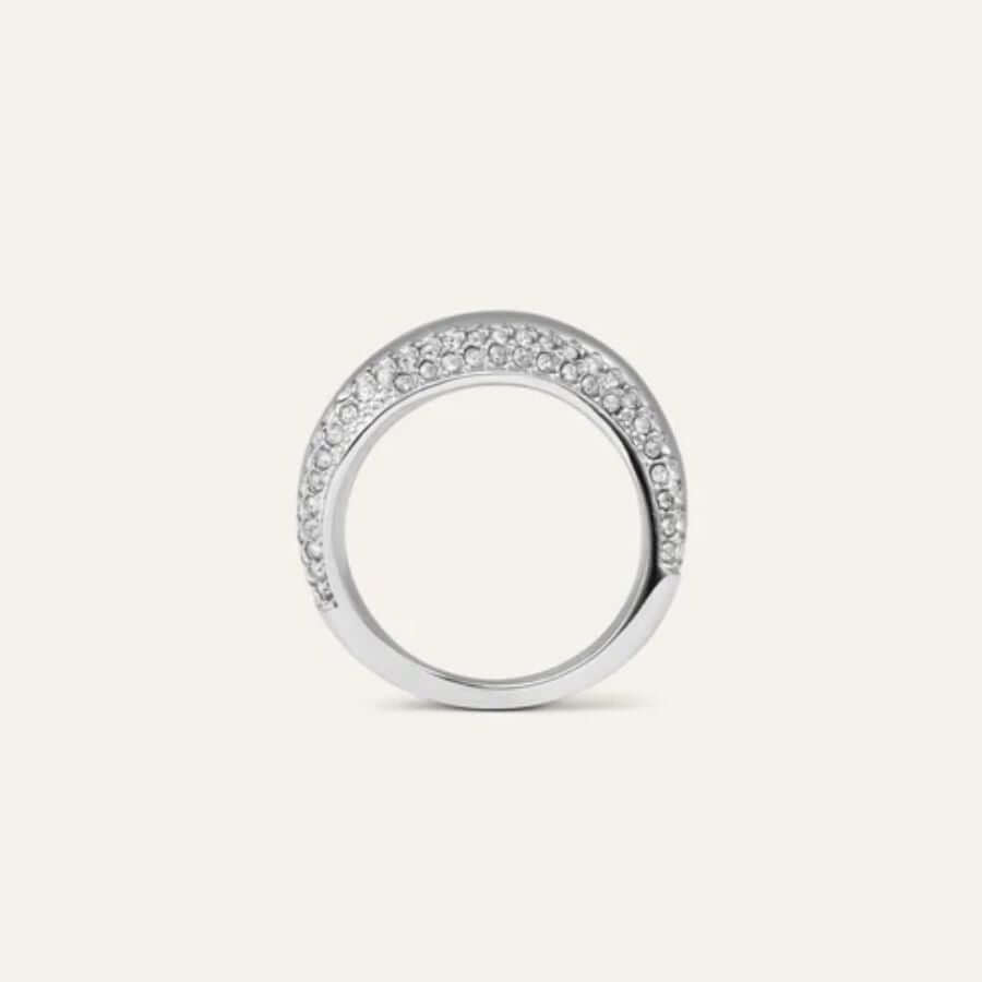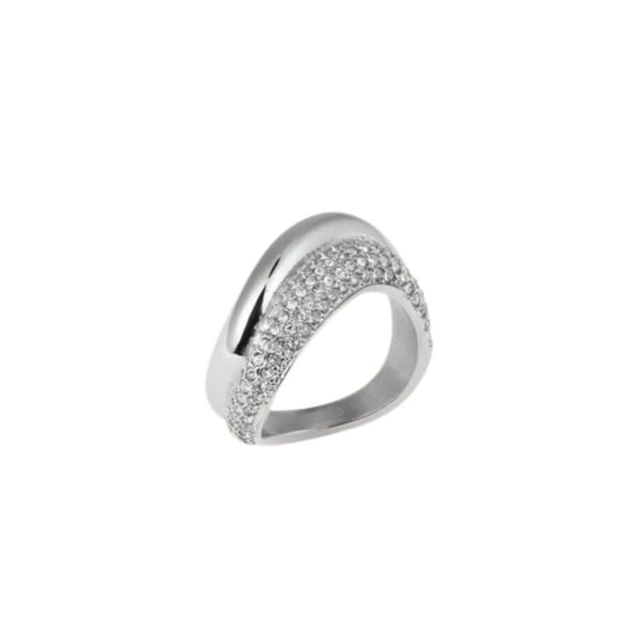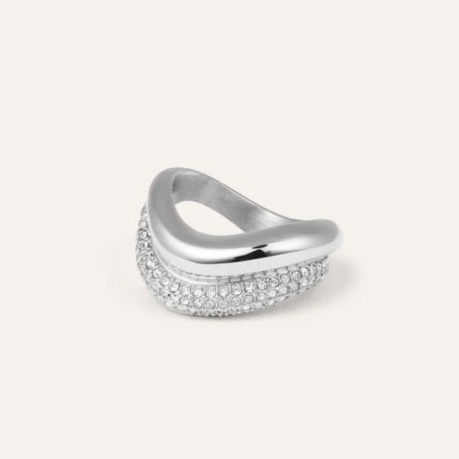 Mockberg Sasha Sormus MB1736 yhdistää näyttävyyden ja mukavuuden elegantilla tavalla. Sen pehmeästi pyöristetty runko istuu miellyttävästi sormessa, ja pinta on koristeltu kimaltelevilla valkoisilla zirkonioilla, jotka säihkyvät upeasti jokaisessa liikkeessä. Sormus tuo arkeen ripauksen luksusta ja toimii yhtä hyvin myös juhlatyylin täydentäjänä.
