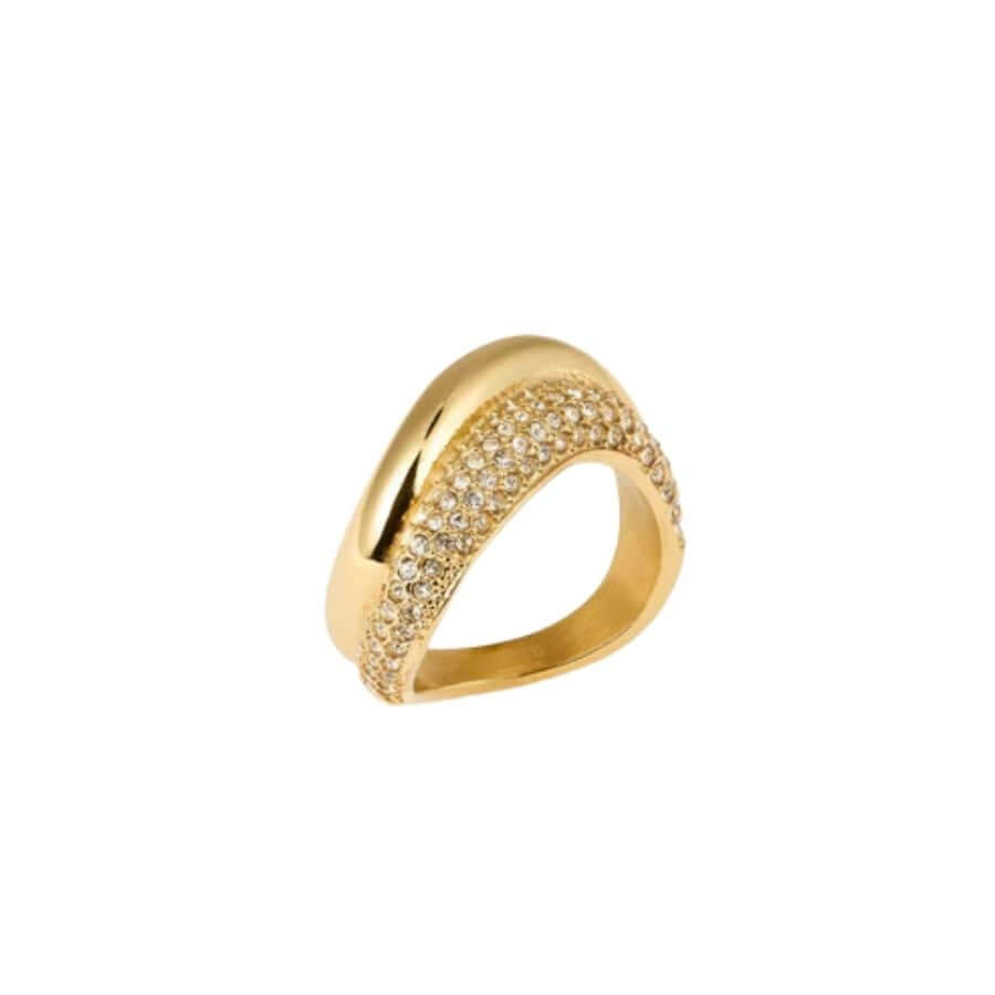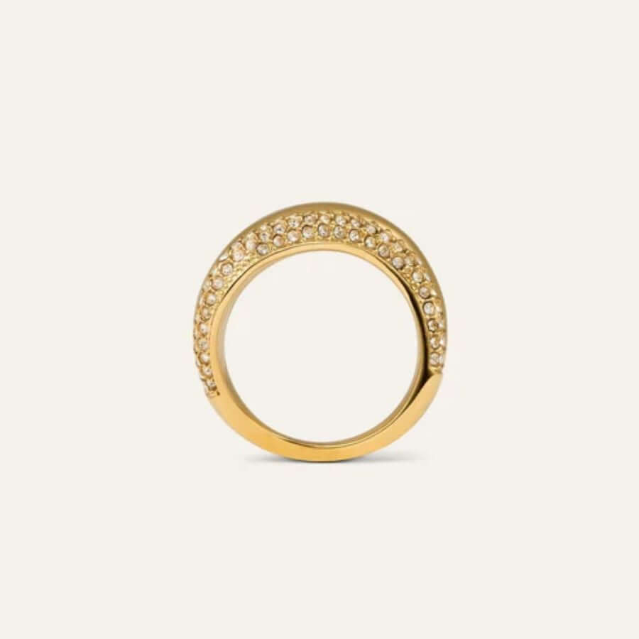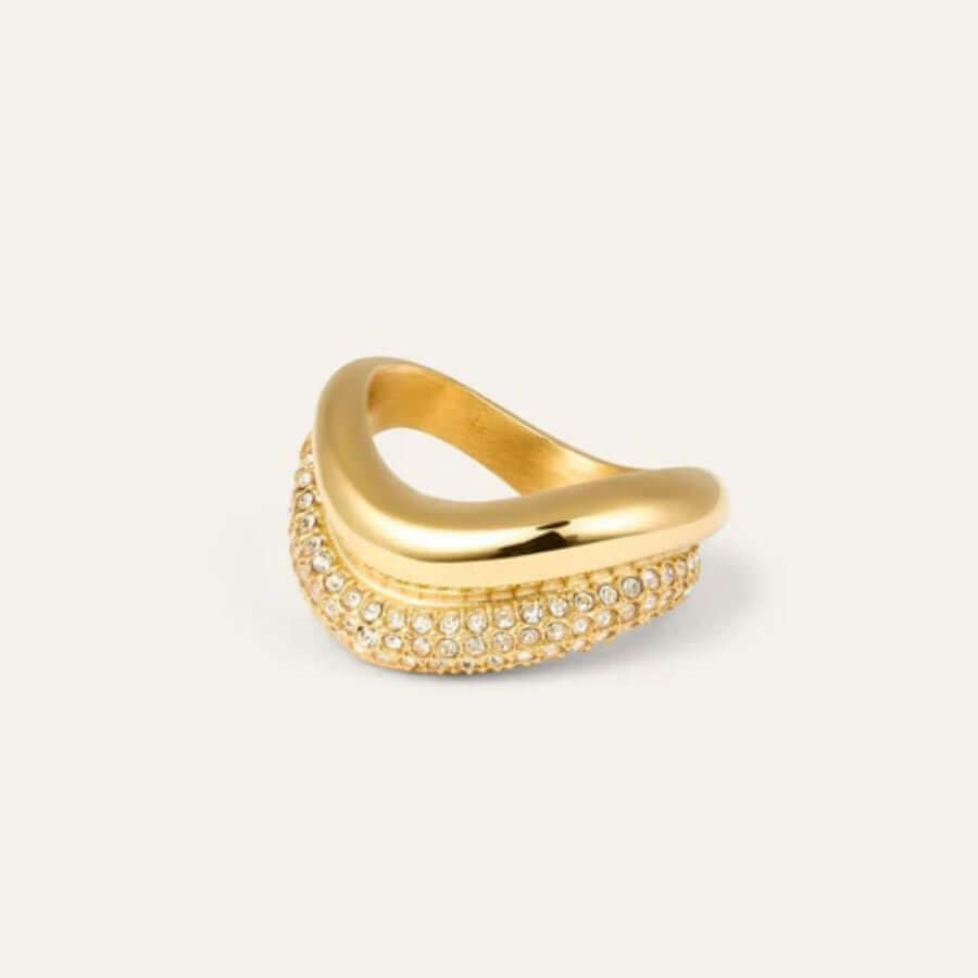 Mockberg Sasha Sormus MB1737 huokuu lämpöä ja näyttävyyttä keltakullan sävyssä. Sen pehmeästi pyöristetty runko on viimeistelty 18 karaatin PVD-kullalla ja koristeltu kimaltelevilla valkoisilla zirkonioilla, jotka luovat upean loiston jokaisessa liikkeessä. Elegantti muotoilu tekee siitä täydellisen korun niin arkeen kuin juhlaan – sormus, joka kulkee mukana kaikissa elämän hetkissä.