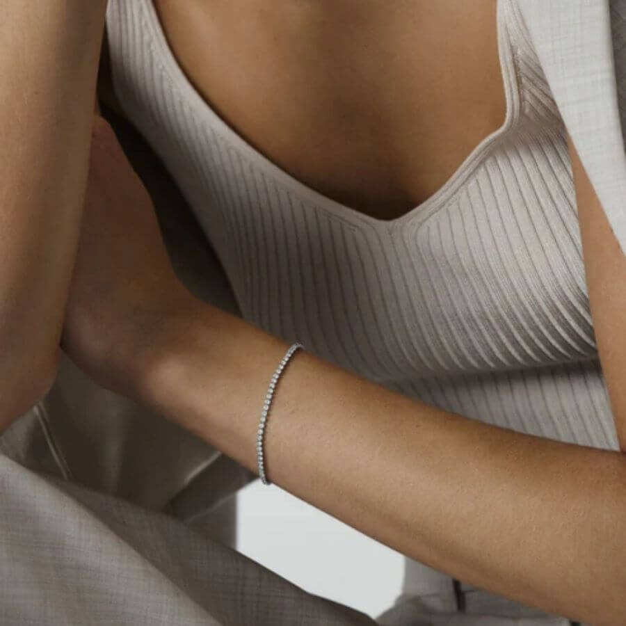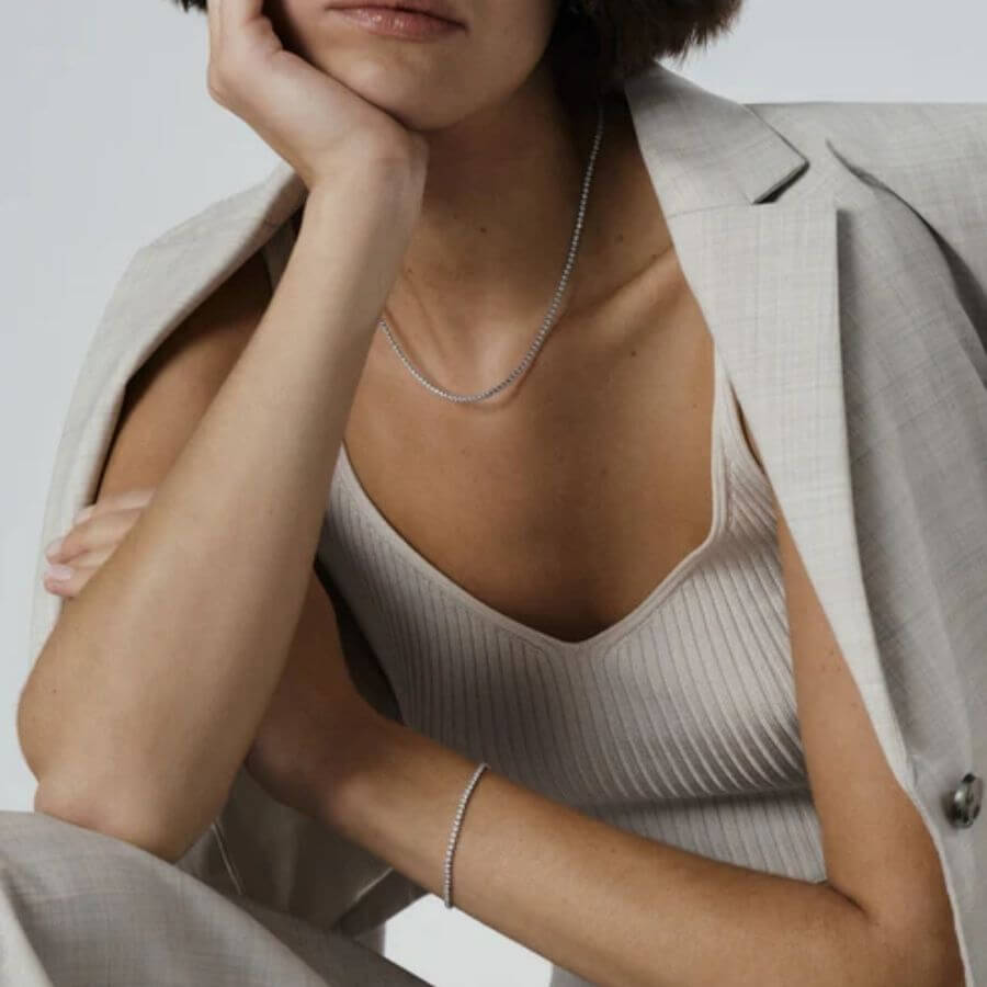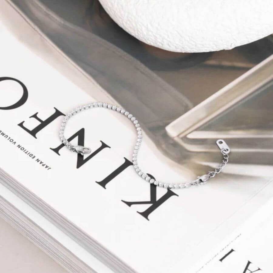 Mockberg Shiny Tennis Rannekoru MB1367 on klassisen eleganssin ilmentymä. Rannekoru koostuu koko pituudeltaan kimaltavista kuutiollisista zirkoniakivistä, jotka luovat ajattoman ja ylellisen kokonaisuuden. Sen siro ja näyttävä muotoilu tekee siitä täydellisen valinnan niin arkeen kuin juhlaan.