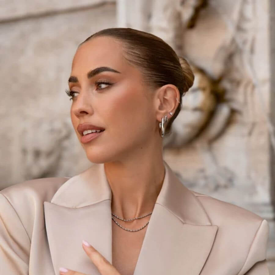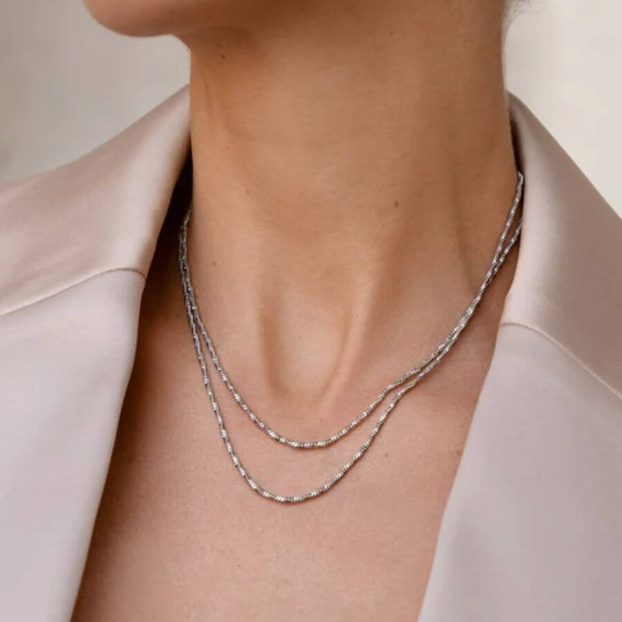 Mockberg Sienna Kaulakoru MB1720 on ajattoman elegantti valinta, joka tuo arkeen ja juhlaan ripauksen huoliteltua kauneutta. Hienostuneesti punottu ketju kiiltävästä ruostumattomasta teräksestä heijastaa valoa kauniisti jokaisella liikkeellä ja laskeutuu pehmeästi kaulalle. Sen hillitty, mutta tyylikäs design tekee siitä helposti yhdisteltävän niin yksin käytettynä kuin muiden kaulakorujen kanssa kerrostettuna.