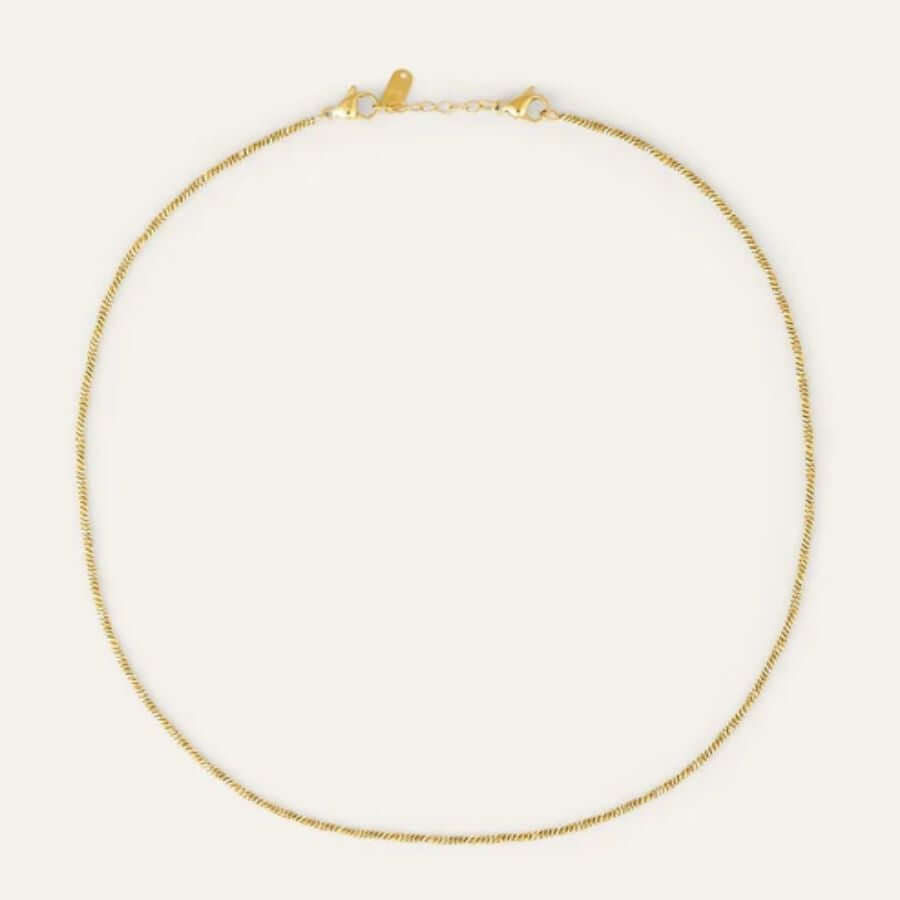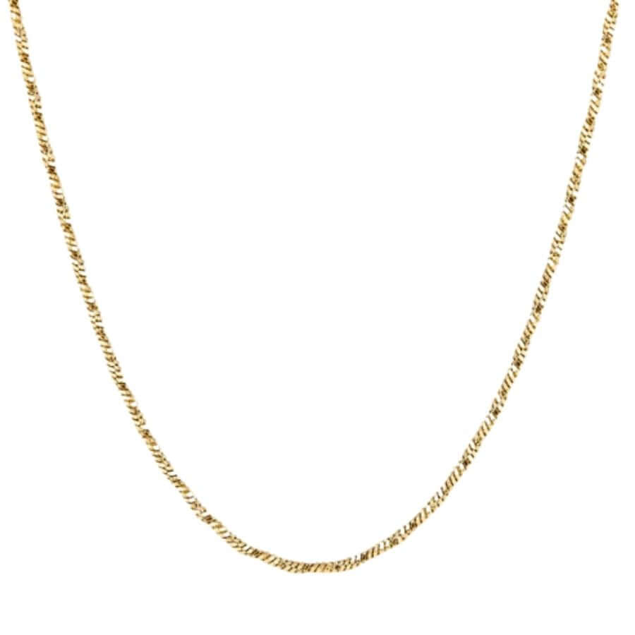 Mockberg Sienna Kaulakoru MB1721 on elegantti kultainen ketju, joka tuo asuun hillittyä luksusta ja lämpöä. Hienostunut, punottu mesh-ketju lepää pehmeästi ihoa vasten ja heijastaa kauniisti valoa jokaisella liikkeellä. Ajaton muotoilu tekee siitä täydellisen korun niin arkeen kuin juhlaan, ja se toimii upeasti myös kerrostettuna muiden kaulakorujen kanssa.