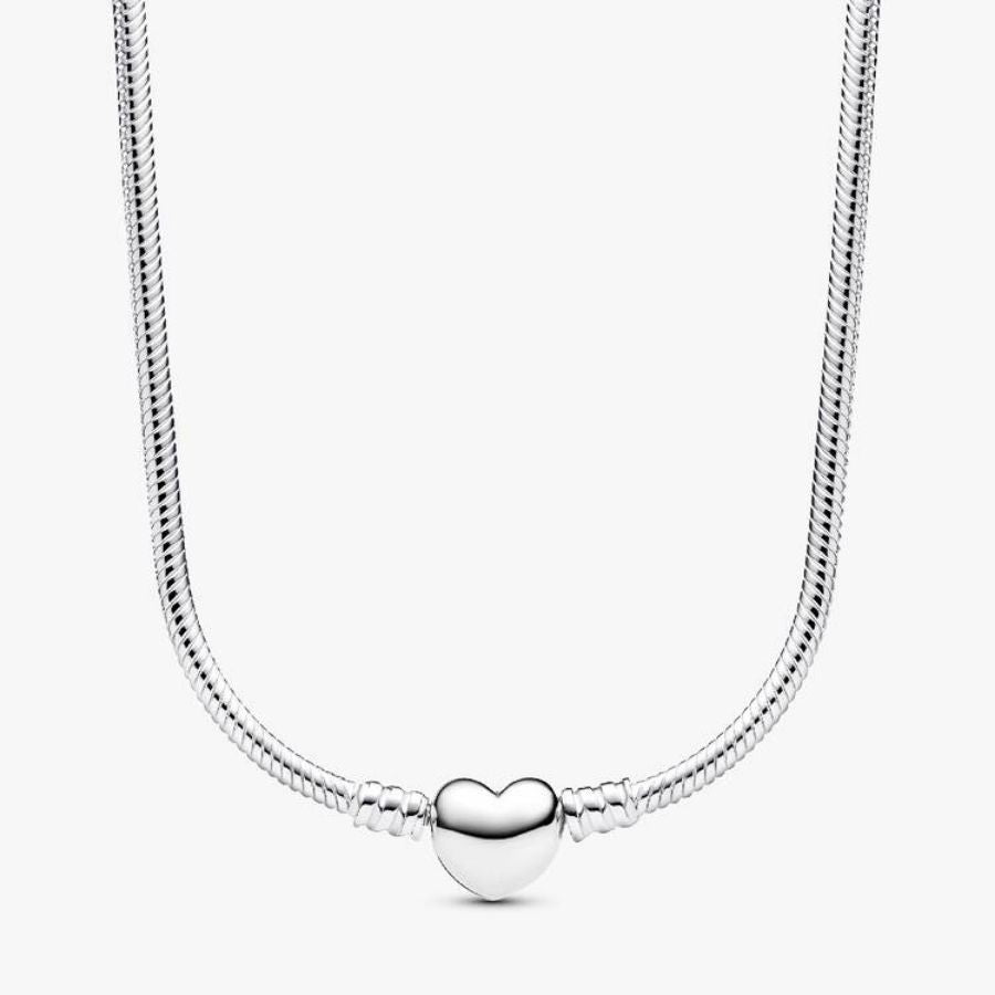 Pandora Moments Heart Käärmeketju Kaulakoru 393091C00 aloittaa tarinansa ajattomalla sterlinghopeisella hehkulla ja sydänlukolla, joka symboloi korun henkilökohtaista merkitystä. Tämä kaulakoru on suunniteltu korostamaan kantajansa omaa tyyliä – joko sellaisenaan tai täydennettynä Pandora Moments -heloilla ja riipuksilla.