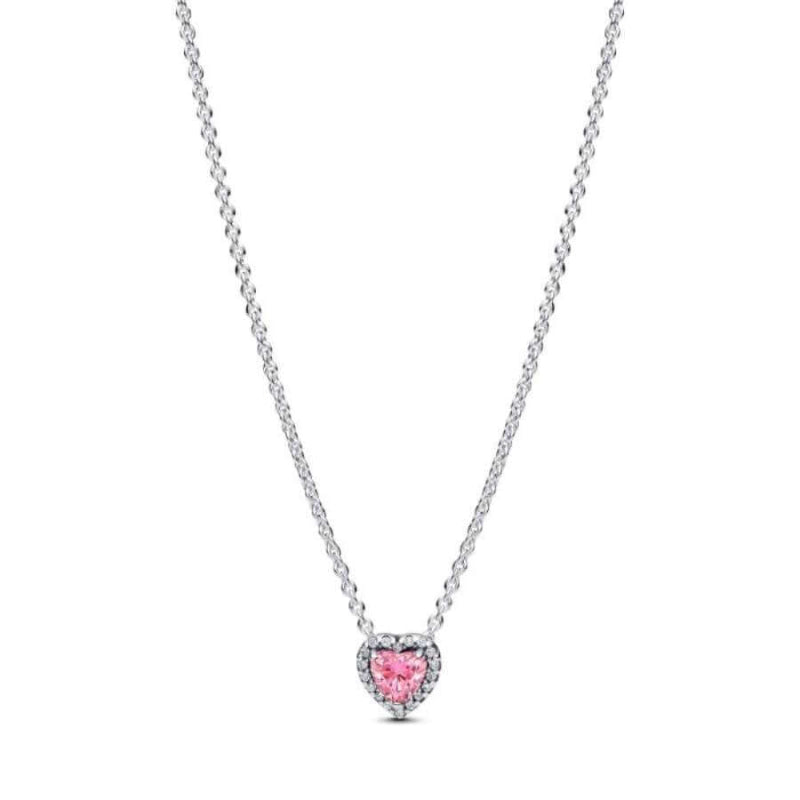 • Riipuksen keskellä on sydämenmuotoinen pinkki sydän, jota kehystää pavé-istutetut zirkonia kivet.