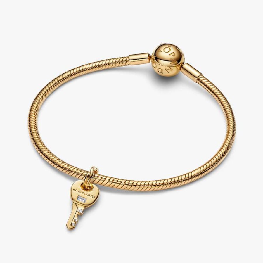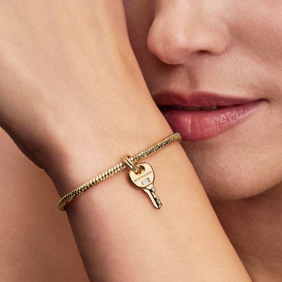 Pandora Avain Dangle Charm Hela 764347C01 on täydellinen valinta sinulle, joka haluat koruun symboliikkaa, kimallusta ja modernia kultahohtoa. Tilaa nyt nopealla toimituksella ja tutustu muihin Pandora koruihin!