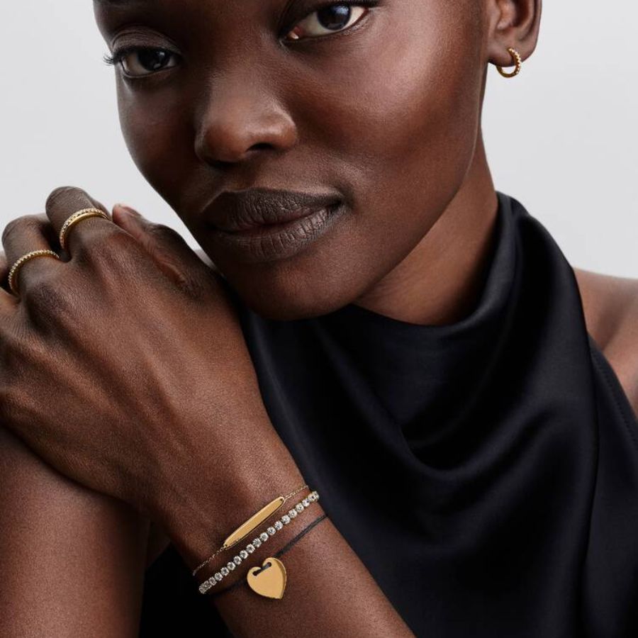 Pandora Kaiverrettava Sydän Rannekoru 564420C01-2 on henkilökohtainen ja moderni asuste, jossa yhdistyvät pehmeän minimalistinen muotoilu ja lämmin kultasävy. Rannekorun selkeälinjainen sydänriipus tarjoaa kauniin alustan omalle viestille, nimikirjaimille tai symbolille, tehden korusta merkityksellisen osan kantajansa arkea.