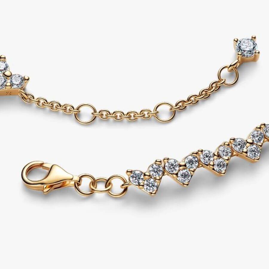 Pandora Sydän Tennisrannekoru 564390C01 on romanttisen eleganssin hienostunut yhdistelmä, jossa klassinen tennisrannekorun muotokieli kohtaa herkät sydänmuotoiset istutukset. Koru tuo ranteeseen sädehtivää valoa ja pehmeää, tunteikasta ilmettä – täydellinen valinta niin arjen kaunistamiseen kuin erityisiin hetkiin.