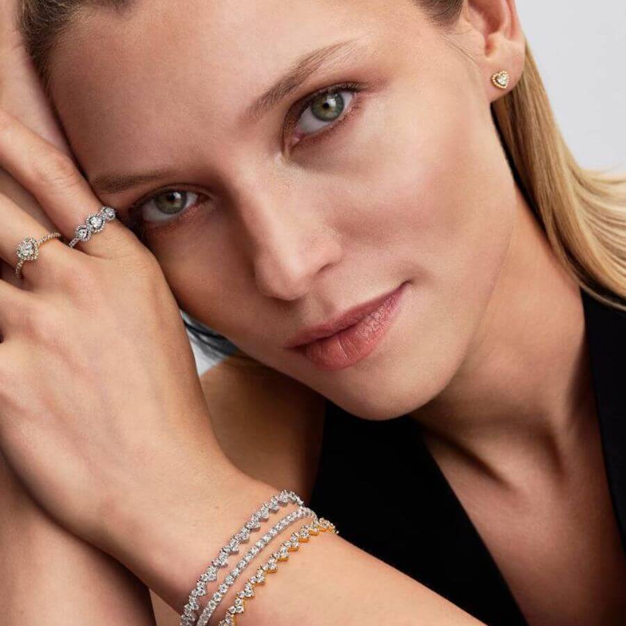 Pandora 594390C01 korostaa sydänlinkkien eleganttia muotoa, jotka kulkevat ranteen ympäri tasaisena, valoa heijastavana nauhana. Jokainen kirkas zirkonia on istutettu huolellisesti, ja niiden hieno kimallus tuo koruun modernia, mutta ajatonta ilmettä. Turvallinen ja siro lukitus sekä pieni jatkoketju mahdollistavat rannekorun tarkan säätämisen, jotta istuvuus on aina täydellinen.