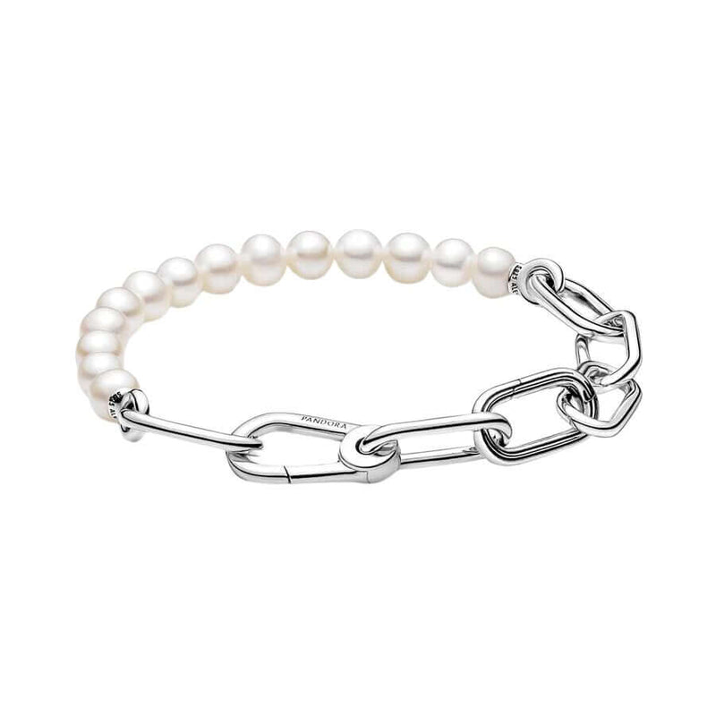 • Tässä ihanassa Pandora 599694C01 ME Helmi rannekorussa on käytetty kauniita makeanvedenhelmiä.
