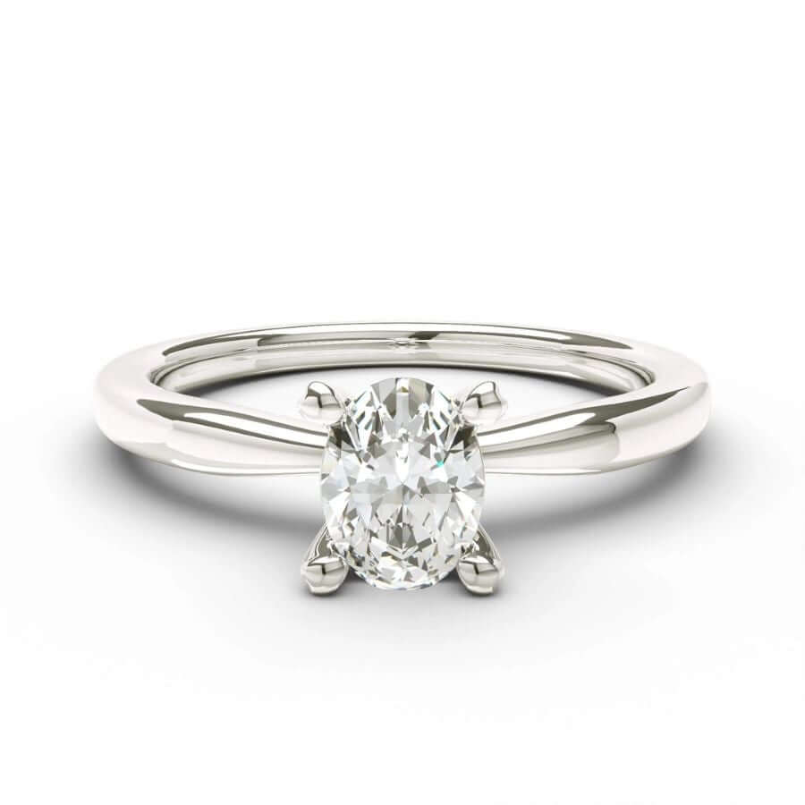 Schalins North042 edustaa selkeää ja harkittua muotokieltä, jossa huomio kohdistuu yhteen huolella valittuun timanttiin. Neljän sirosti muotoillun kynnen varaan istutettu ovaalihiontainen kivi tuo timantin säihkeen kauniisti esiin ja varmistaa samalla turvallisen ja kestävän kiinnityksen. Sormuksen runko on 2 mm leveä ja 1,9 mm korkea, ja sen hienovarainen muotoilu tekee sormuksesta miellyttävän käyttää koko päivän ajan.