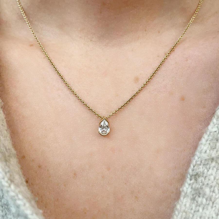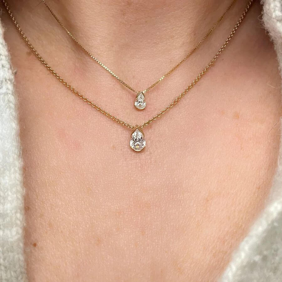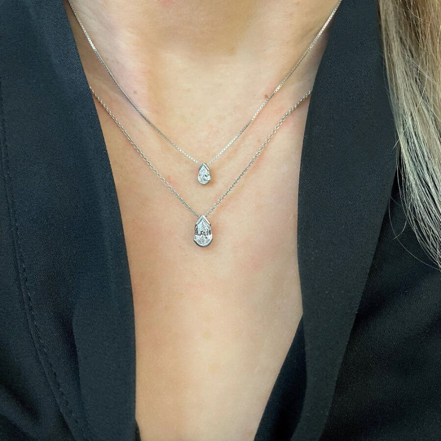 Schalins Timanttiriipus ELOGE tarjoaa kolme materiaalivaihtoehtoa: keltakulta, valkokulta ja platina. Keltakulta tuo riipukseen lämpöä ja klassista hehkua, valkokulta korostaa timantin raikasta kirkkautta modernisti, ja platina luo ylellisen, arvokkaan tuntuman korulle, joka kestää sukupolvelta toiselle. Bazel-tyylinen istutus kehystää päärynänmuotoisen timantin mestarillisesti ja antaa sille kauniin suojan sekä hienostuneen siluetin. Timantti on laatuluokitukseltaan Top Wesselton VS - säihkyvä valinta, joka näyttää upealta jokaisessa valossa.