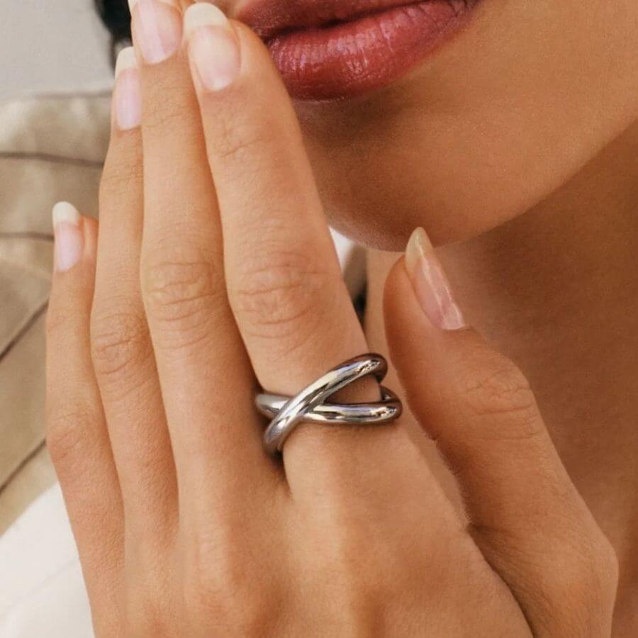 Sormus on valmistettu kiiltävästä ruostumattomasta teräksestä, joka antaa korulle raikkaan ja ajattoman hopeansävyisen ilmeen. Kestävä materiaali säilyttää kiiltonsa käytössä ja tekee korusta huolettoman valinnan. Nikkeliturvallinen ja vedenkestävä rakenne varmistaa, että sormus sopii myös päivittäiseen käyttöön.