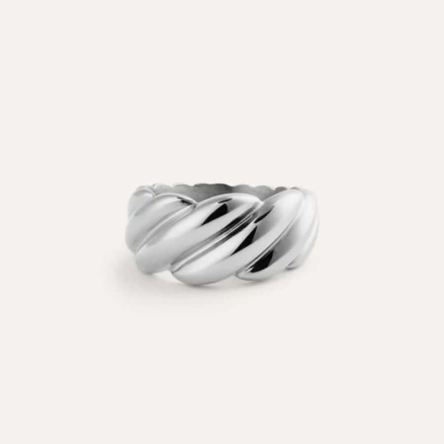 Mockberg MB1902 jatkaa brändin tuttua minimalistista ja tarkkaan hiottua muotokieltä. Selénen tunnusomainen, kevyesti kierretty muoto luo liikkeen tuntua ja pehmeää elävyyttä sormukseen, ja kiiltävä hopeansävy tekee kokonaisuudesta raikkaan ja modernin. Sormuksen muotoilu on suunniteltu istumaan mukavasti sormessa, samalla kun sen rohkea mutta selkeälinjainen olemus antaa sille vahvan tyylivaikutelman.