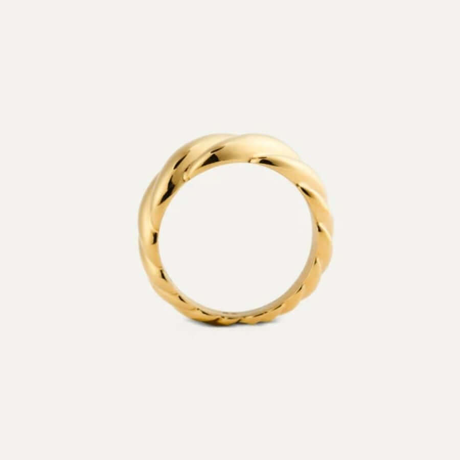 Mockberg MB1908 jatkaa brändin selkeää ja modernia muotoilukieltä. Sormuksen orgaaninen, hieman kierretty muoto luo kauniin liikkeen tunteen, ja kiiltävä 18K kullan PVD-pinnoite lisää siihen syvyyttä ja pehmeää hehkua. Muotoilu on samalla leikkisä ja ajaton, tehden Selénestä korun, joka sopii niin yksittäiseksi katseenvang— koruksi kuin osaksi näyttävämpää sormuspinoa.