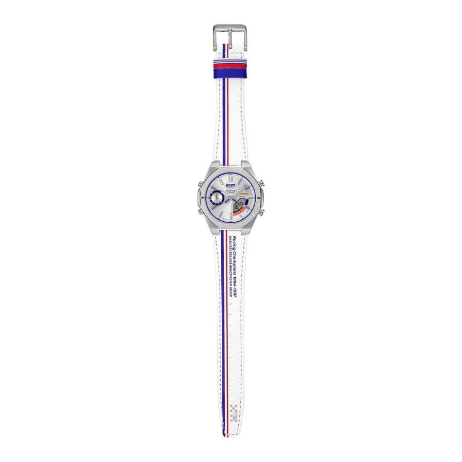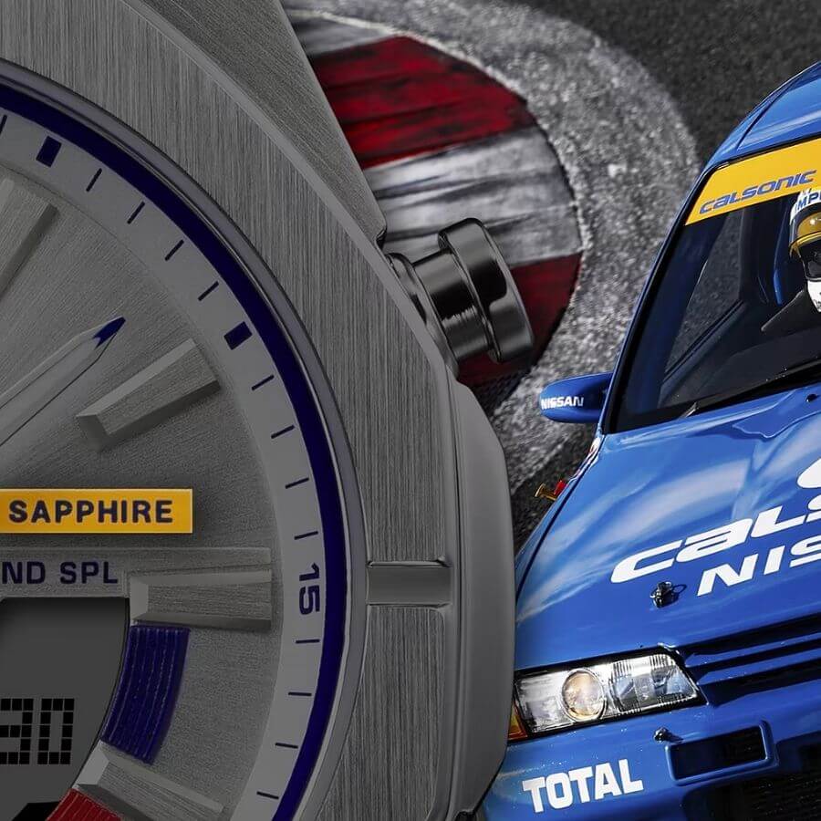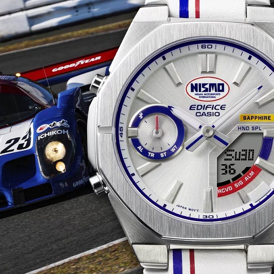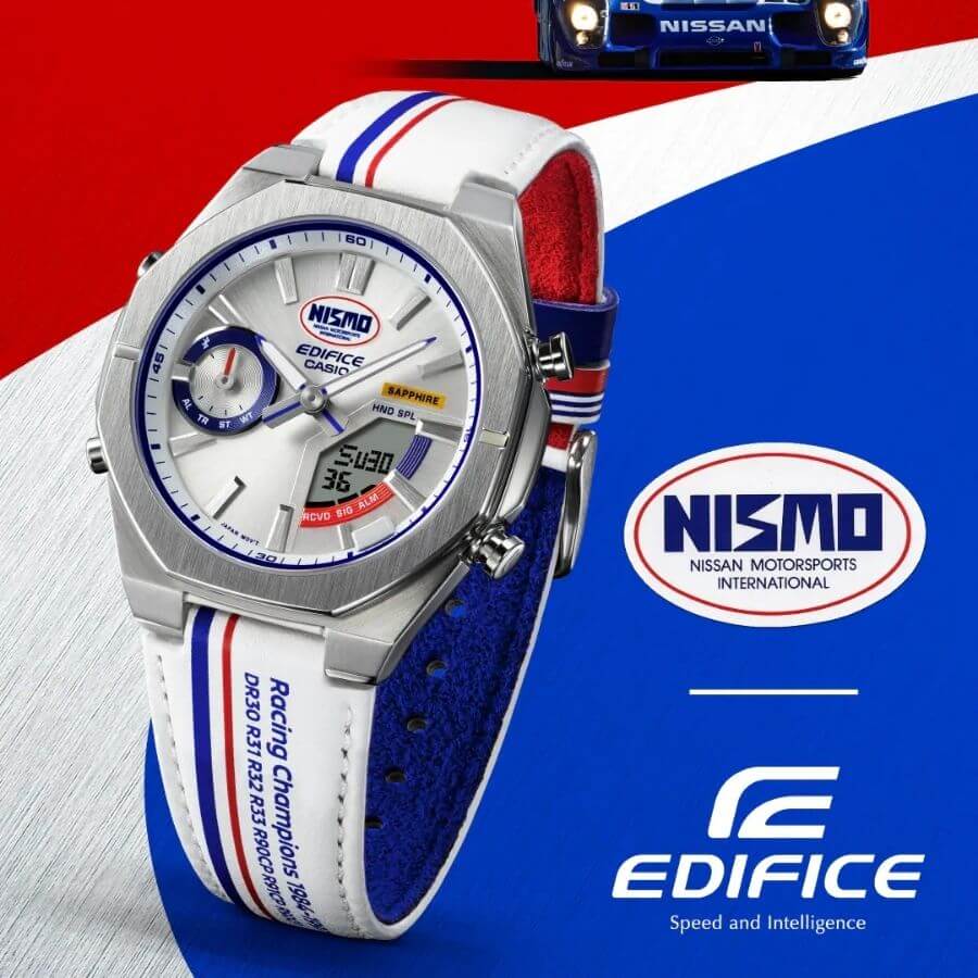 Casio ECB-S10NIS-7AER on syntynyt Casion, Nissanin ja NISMO:n ainutlaatuisessa yhteistyössä. Kellon muotoilu ammentaa inspiraationsa NISMO:n historiasta vuodesta 1984 alkaen. Kellotaulussa ja rannekkeessa toistuva NISMO:n ikoninen kolmivärinen värimaailma – punainen, sininen ja valkoinen – tekee kokonaisuudesta urheilullisen mutta harkitun. Alkuperäinen NISMO-logo kellotaulun yläosassa hohtaa pimeässä viitaten legendaarisiin yökilpailuihin, ja tauluun lisätty yksityiskohta Nissan Skyline R32:n oranssista tuulilasibannerista viimeistelee designin. Rannekkeeseen painetut NISMO-mestareiden nimet vuosilta 1984–1997 kertovat tarinaa tiimistä ja sen saavutuksista.