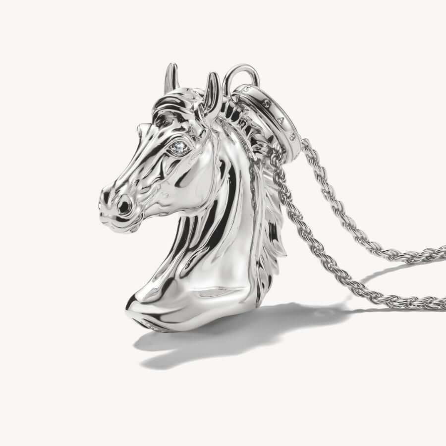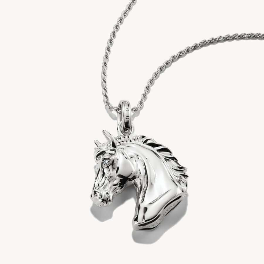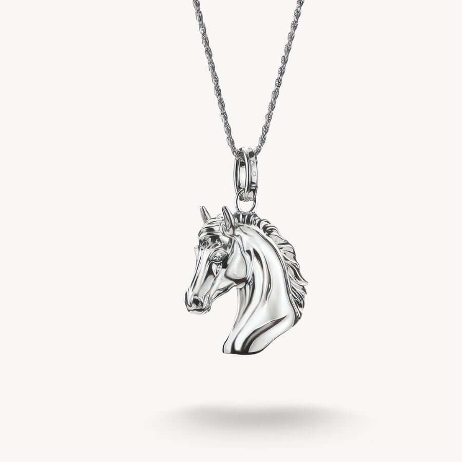 Thomas Sabo KE2342-643-21 kuuluu Elyndra-mallistoon, jossa luontoaiheet ja symboliikka saavat modernin, yksityiskohtaisen tulkinnan. Kaulakorun keskiössä on kolmiulotteinen hevosenpääriipus, jonka virtaava harja, hienovaraiset kaiverrukset ja huolellisesti muotoillut linjat tuovat designiin elävyyttä ja syvyyttä. Hevosen silminä säihkyvät valkoiset zirkoniat korostavat riipuksen ilmeikkyyttä ja antavat korulle hienostuneen, lähes myyttisen luonteen. Hevonen symboloi vapautta, eleganssia ja sisäistä voimaa – arvoja, jotka tekevät tästä korusta merkityksellisen kumppanin arkeen ja juhlaan.