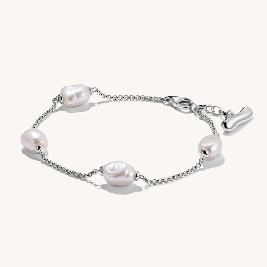 Thomas Sabo A2189-082-14 -rannekoru on valmistettu kierrätetystä 925 sterlinghopeasta ja viimeistelty huolella käsityönä. Korun katseenvangitsevina yksityiskohtina ovat neljä uniikkia, orgaanisen muotoista makeanveden viljeltyä helmeä, joista jokainen on yksilöllinen. Helmimateriaalin luonnollinen muoto ja pehmeä hohde juhlistavat sekä luonnon että korun kantajan ainutlaatuista kauneutta. Hopeaketjun siro rakenne tuo kokonaisuuteen modernia keveyttä ja tasapainottaa helmien pehmeää ilmettä.