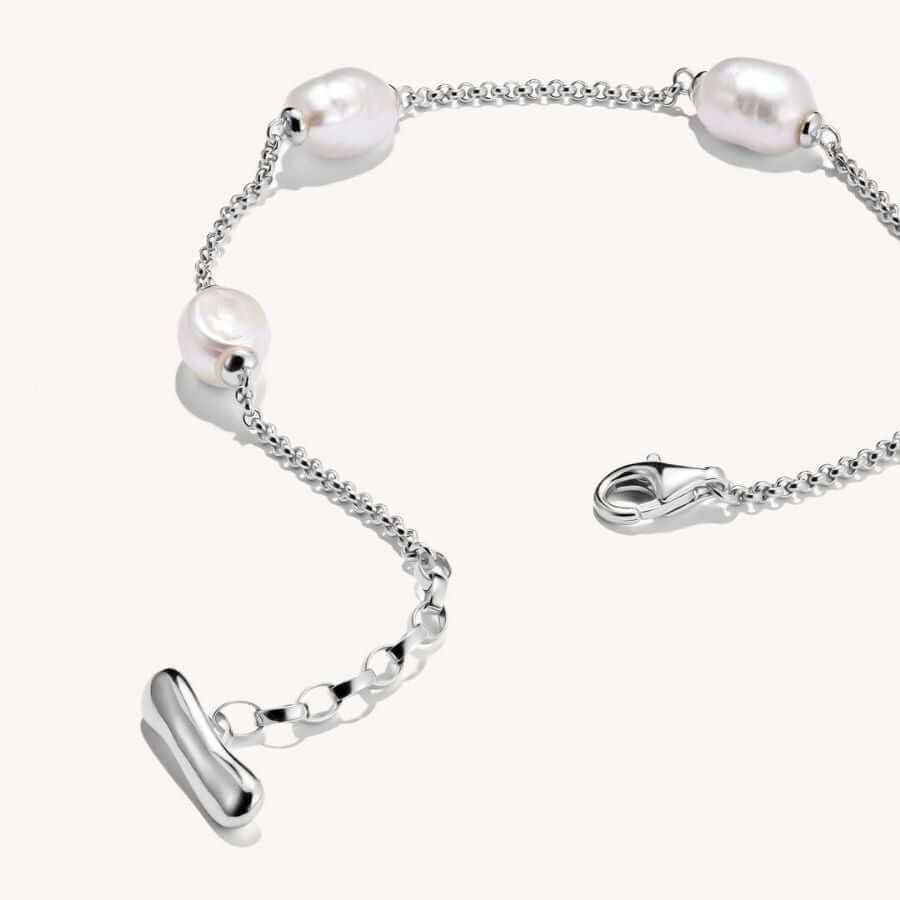 Laadukkaat materiaalit tekevät rannekorusta kestävän ja miellyttävän käyttää. Kierrätetty sterlinghopea edustaa vastuullista valintaa, ja aidot makeanvedenhelmet säilyttävät kauniin kiiltonsa käytössä. Pituussäädettävä ketju 16–19 cm mahdollistaa täydellisen istuvuuden eri ranteisiin, ja varma jousirengaslukko tekee rannekorusta helpon ja turvallisen kiinnittää.