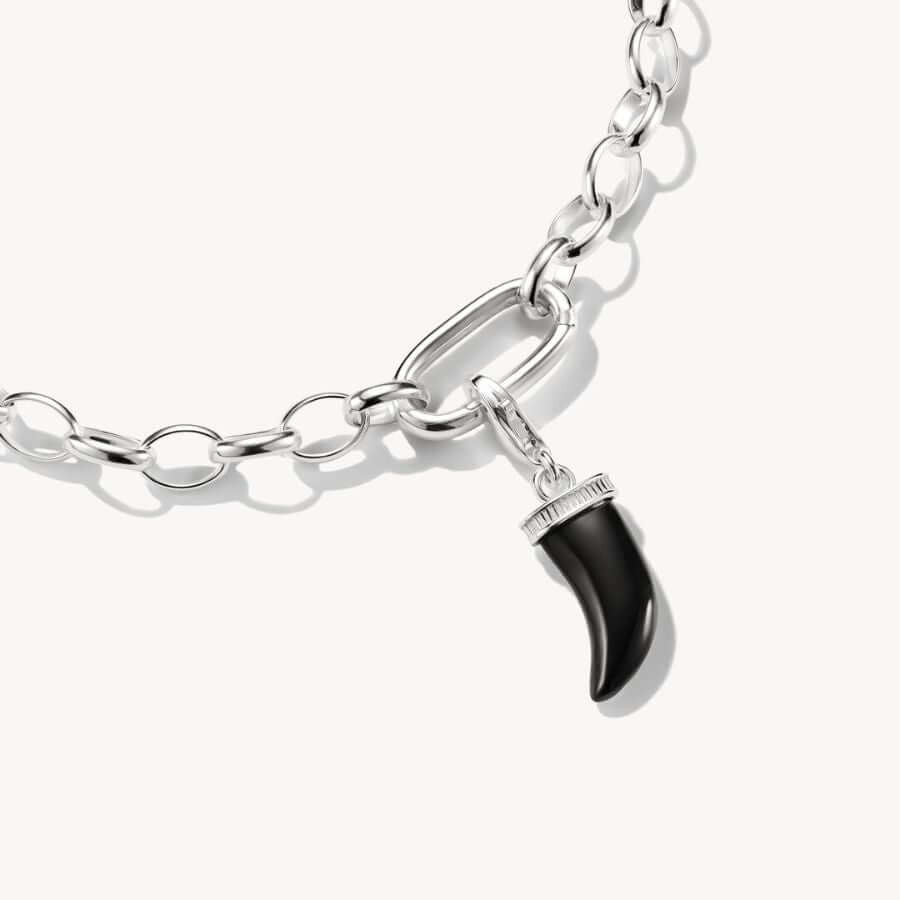 Tooth Obsidian -hela sopii erinomaisesti Thomas Sabon Charm Club -koruihin ja on erityisen näyttävä yhdistettynä eläin- ja luontoaiheisiin symboleihin. Yksin käytettynä se toimii vahvana statement-koruna, mutta osana useamman charmin kokonaisuutta se syventää korun tarinaa ja merkitystä. Musta sävy tuo tyyliin ryhtiä ja ajattomuutta, sopien monenlaisiin asukokonaisuuksiin.