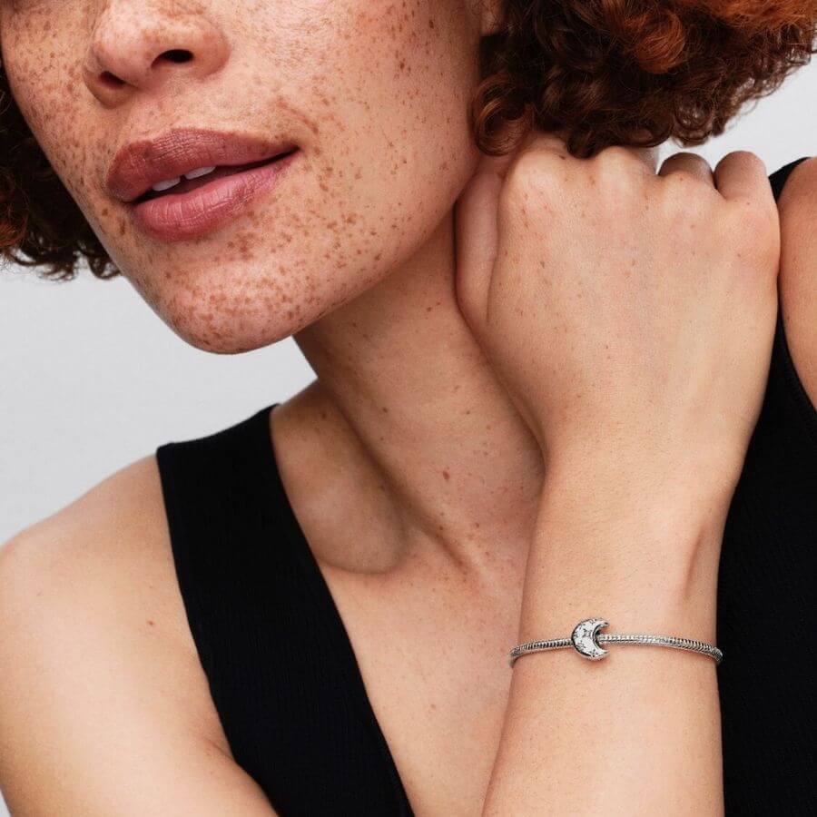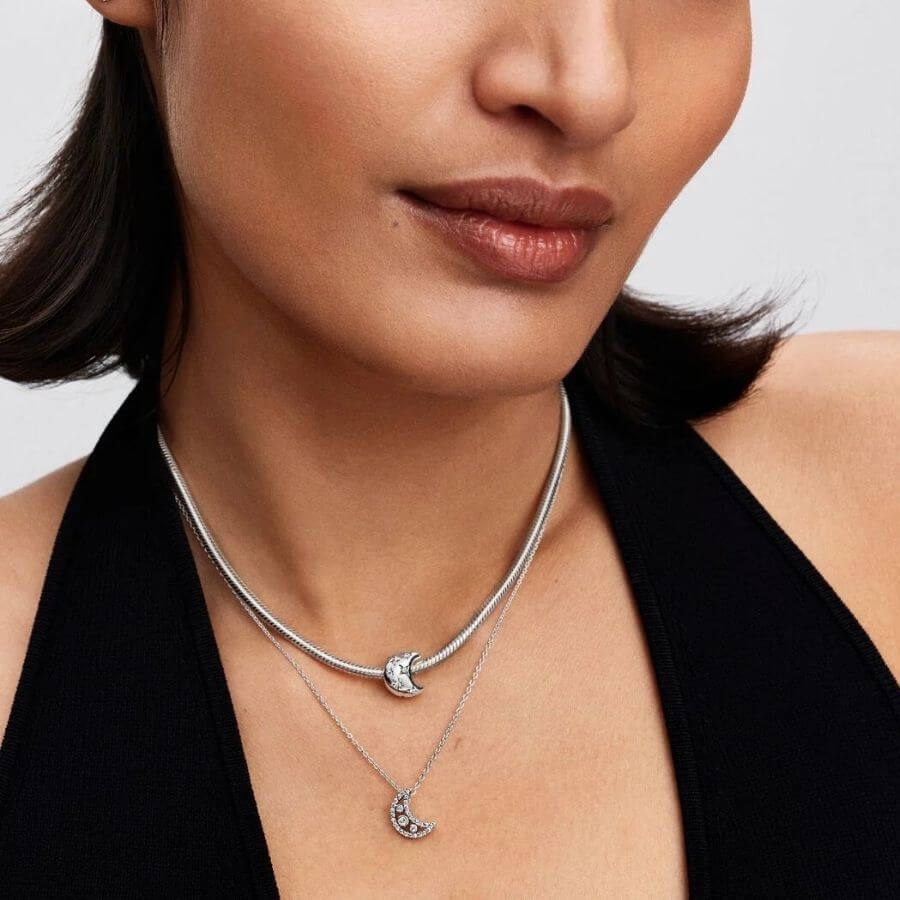 Pandora 794254C01 on valmistettu kiiltävästä sterlinghopeasta ja koristeltu kirkkailla zirkoneilla, jotka säihkyvät kuin tähdet yötaivaalla. Jokainen pieni kivi on asetettu huolellisesti korostamaan kuun pehmeitä kaaria ja luomaan siihen elävää, valoa heijastavaa pintaa.
