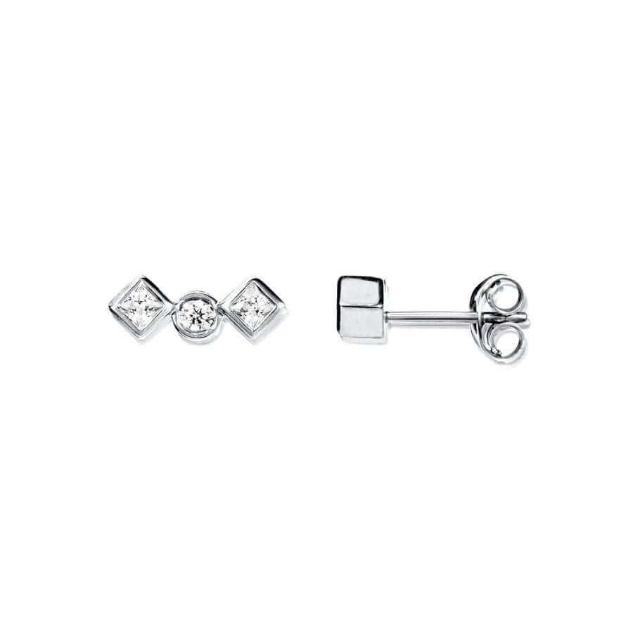 Efva Attling 12-102-02379 -korvakorujen 11 mm kokoinen muotoilu yhdistää kaksi princess-hiottua timanttia ja yhden briljanttihiotun timantin, jotka säihkyvät valkokullan kirkasta pintaa vasten. Geometrinen, moderni muotokieli luo koruihin selkeyttä ja harmonista rytmiä, kun taas timanttien leikkausten erilaisuus antaa niille syvyyttä ja eloa.