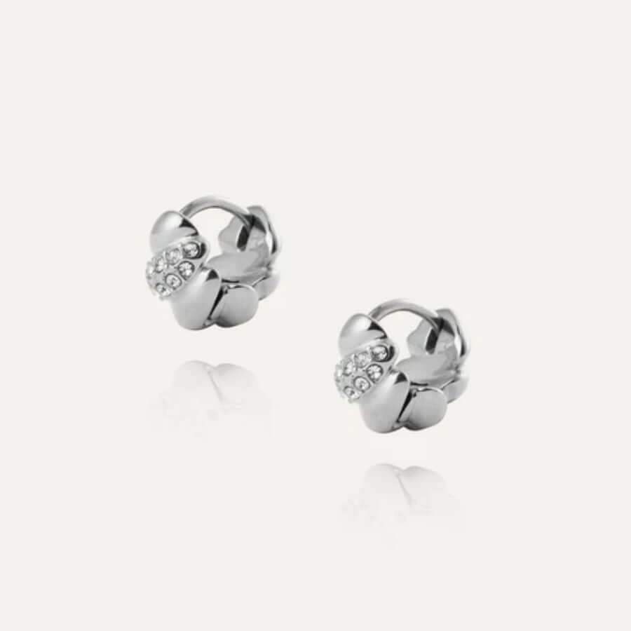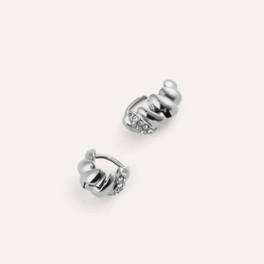 Mockberg Noela Small Korvarenkaat MB1926 tuovat korville modernin, viileän ja pehmeästi kiertyvän ilmeen, joka sopii täydellisesti sekä arjen rentoihin hetkiin että huoliteltuun iltatyyliin. Pienikokoinen mutta ilmeikäs muotoilu yhdistää sileät metalliosat ja pavé-istutetut valkoiset Preciosa-kivet, jotka tuovat kasvojen läheisyyteen hillittyä säihkettä – juuri sopivan määrän valoa ilman liiallista näyttävyyttä.