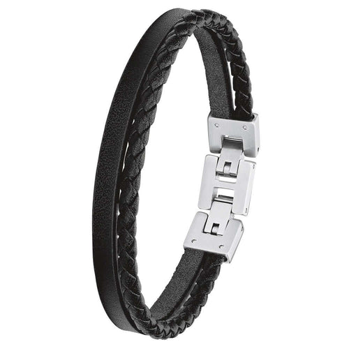 S.Oliver musta nahkainen rannekoru laatalla 2027445