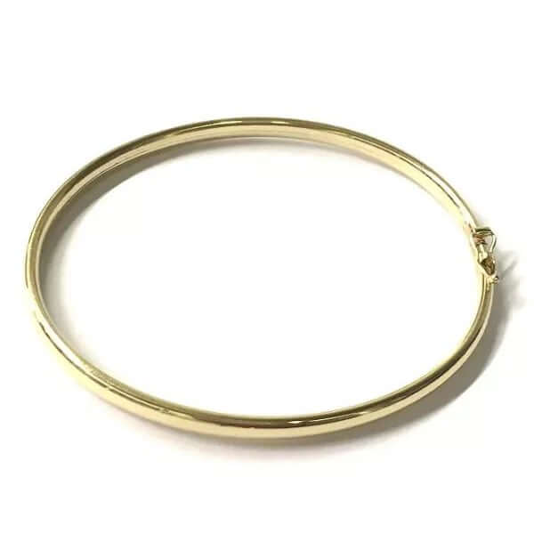 - Tyylikäs14k Kultainen rannerengas 3mm - 17.2 cm, jossa on hieman pyöristetty profiili.