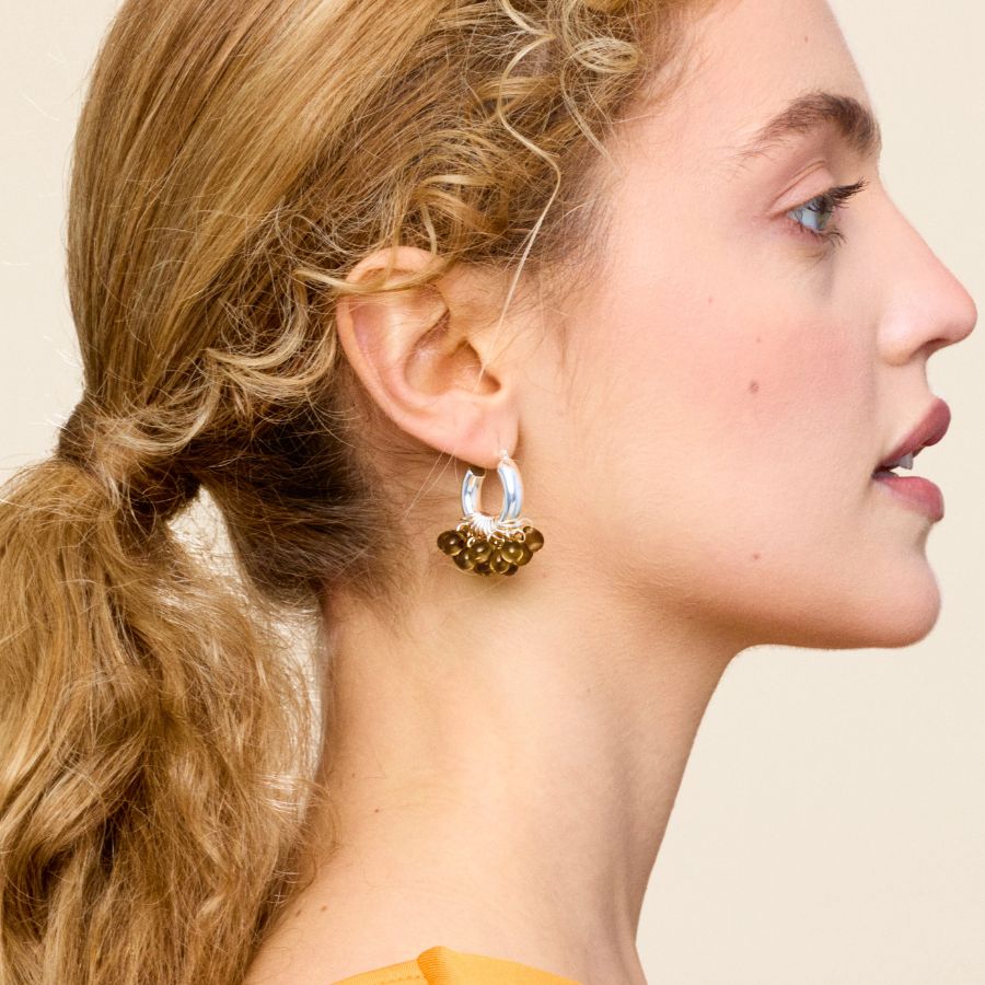 Annele ANX5051H on valmistettu hopeoidusta/kullatusta 925 sterlinghopeasta ja lasihelmistä, jotka heijastavat valoa pehmeästi ja tuovat koruun makean vivahteen. Jokainen yksityiskohta on tarkoin mietitty ja viimeistelty käsityönä Suomessa – jokainen pari on siis uniikki ja täynnä Annelen iloista energiaa.